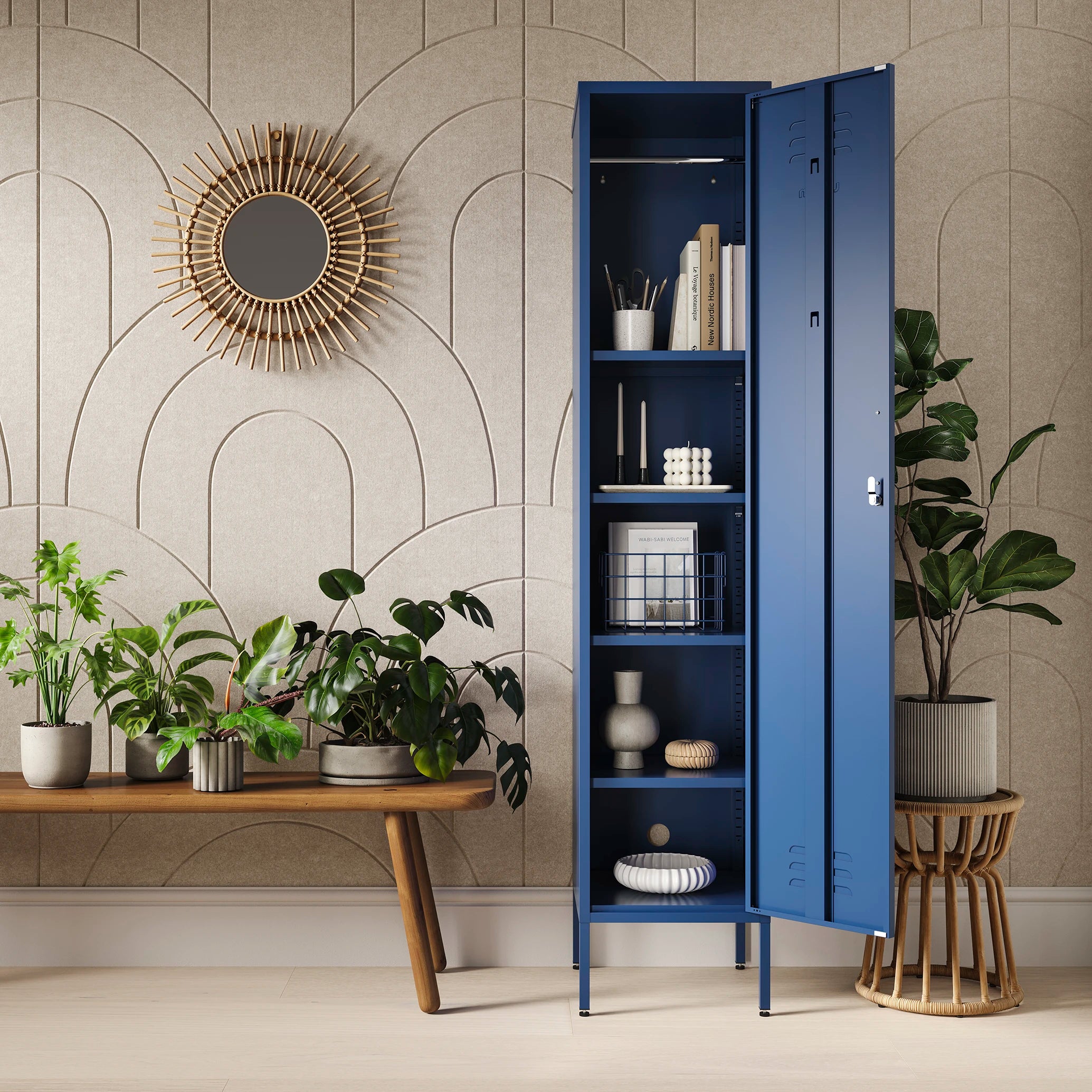 The Bexley Tall single door storage locker in navy blue, against a white background.