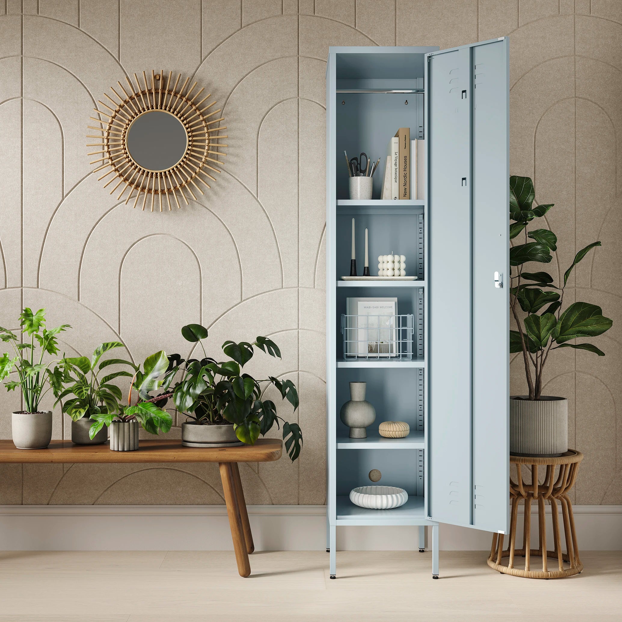 Stylish and space-saving, the Sky Blue Bexley is a tall, slim storage locker that adds a pop of personality and valuable storage space to even the smallest room. With its magnetic surface and fully adjustable shelves, this Sky Blue locker is perfect for adding a touch of colour to bedrooms, hallways, or anywhere you need extra storage. The soft Sky Blue finish brings a pop of personality while helping you stay organised. Whether you're storing books, accessories, or daily essentials, the Sky Blue Bexley is both pretty and practical. Plus, it’s packed with extra features such as a magnetic surface, handy hooks, wall mounting holes and adjustable feet.