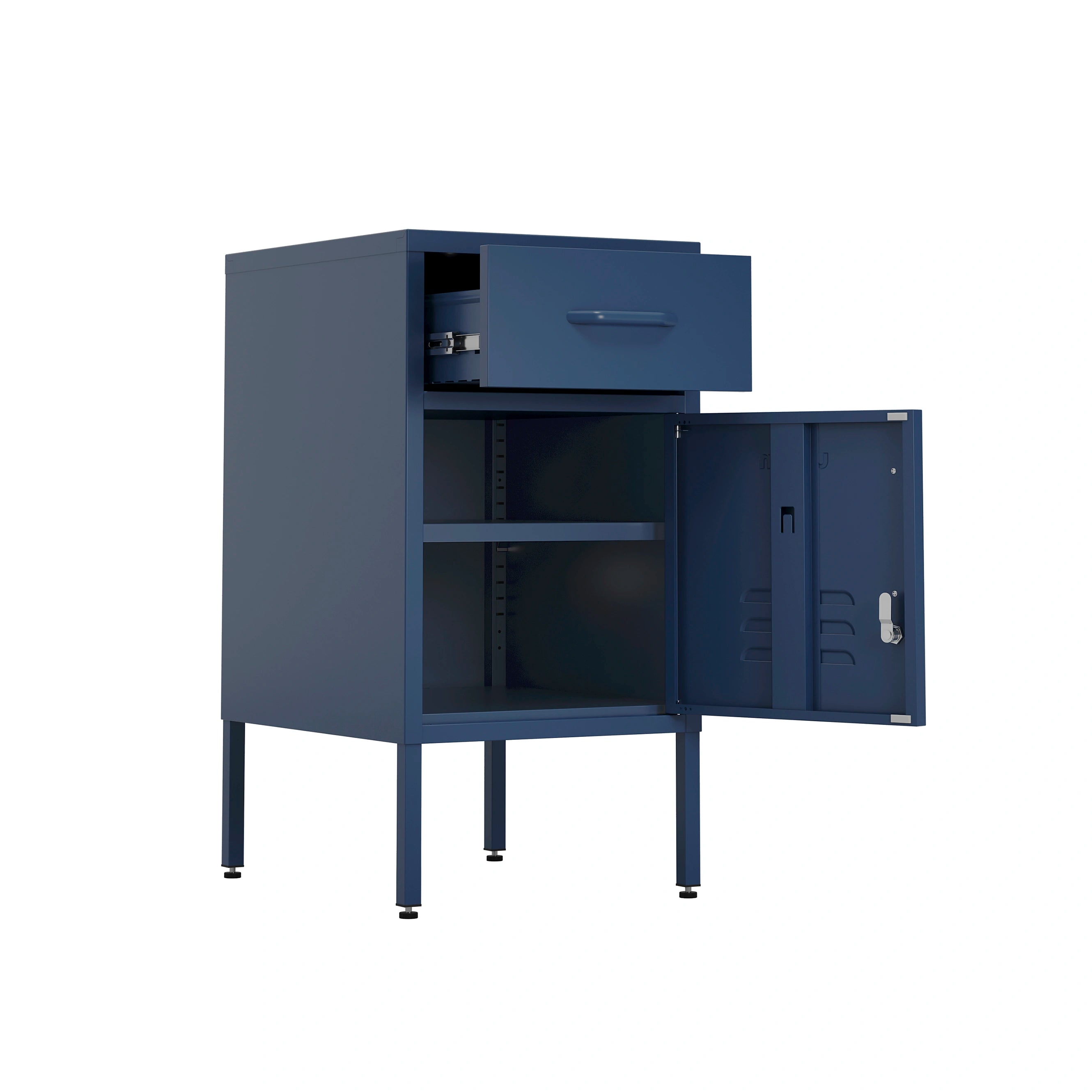 Add a pop of colour to your room with the Navy Blue Bromley Locker, and discover its combination of practicality and style. Whether you want a cute blue bedside table or modern blue office furniture, the single-door, one drawer Navy Blue Bromley's got you covered. This locker's adjustable shelves fit all your essentials, and the lockable doors keep everything safe. Plus, it’s loaded with extra features like a magnetic surface, handy hooks, wall mounting holes, and adjustable feet. From tidying up your bedroom to storing your bathroom must-haves, this Navy Blue locker fits anywhere and brings a fresh, vibrant vibe to your home.