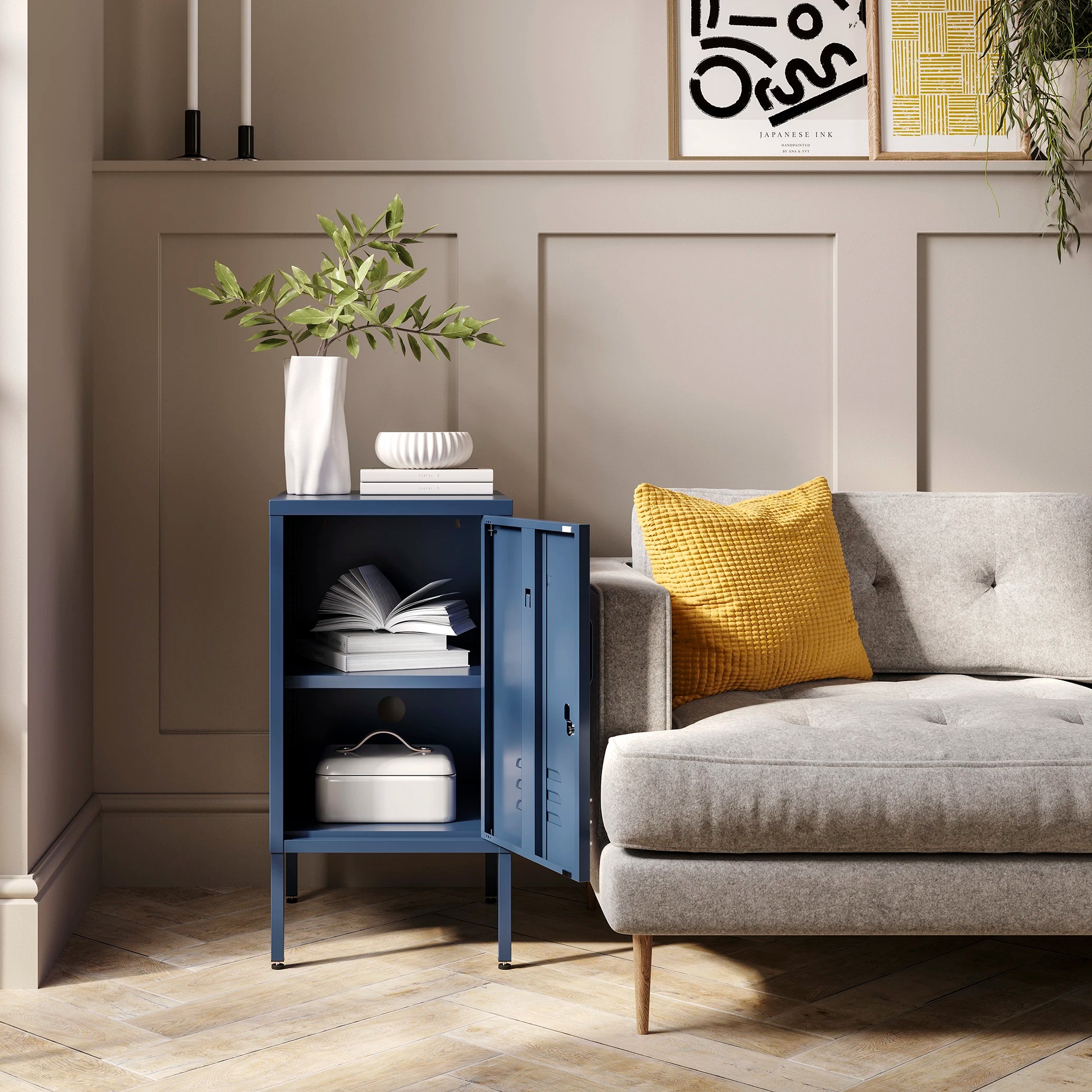 Add a pop of colour to your room with the Navy Blue Camden locker, and discover its combination of practicality and style. Whether you want a cute blue bedside table or a modern office cabinet, The single-door Navy Blue Camden’s got you covered. This locker's adjustable shelves fit all your essentials, and the lockable doors keep everything safe. Plus, it’s loaded with extra features like a magnetic surface, handy hooks, wall mounting holes, and adjustable feet. From tidying up your bedroom to storing your bathroom must-haves, this Navy Blue fits anywhere and brings a fresh, vibrant vibe to your home.