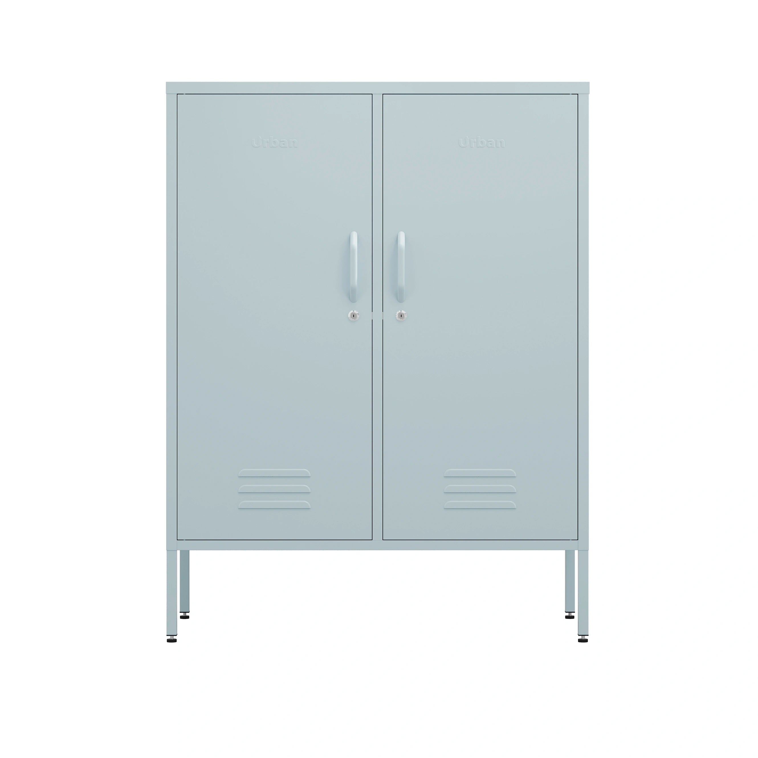Freshen up your room with the cool tones of the Sky Blue Fulham locker. This two-door locker cabinet combines style and practicality, offering ample storage space for all your essentials. The adjustable shelves make it easy to customise the interior, while the lockable doors keep your items secure. Packed with handy features like a magnetic surface, hooks, wall mounting holes, and adjustable feet, the Sky Blue Fulham locker fits perfectly into any room, and it can be used as a bedroom locker or office locker. Bring a breath of fresh air to your storage with this sleek and stylish Sky Blue locker.