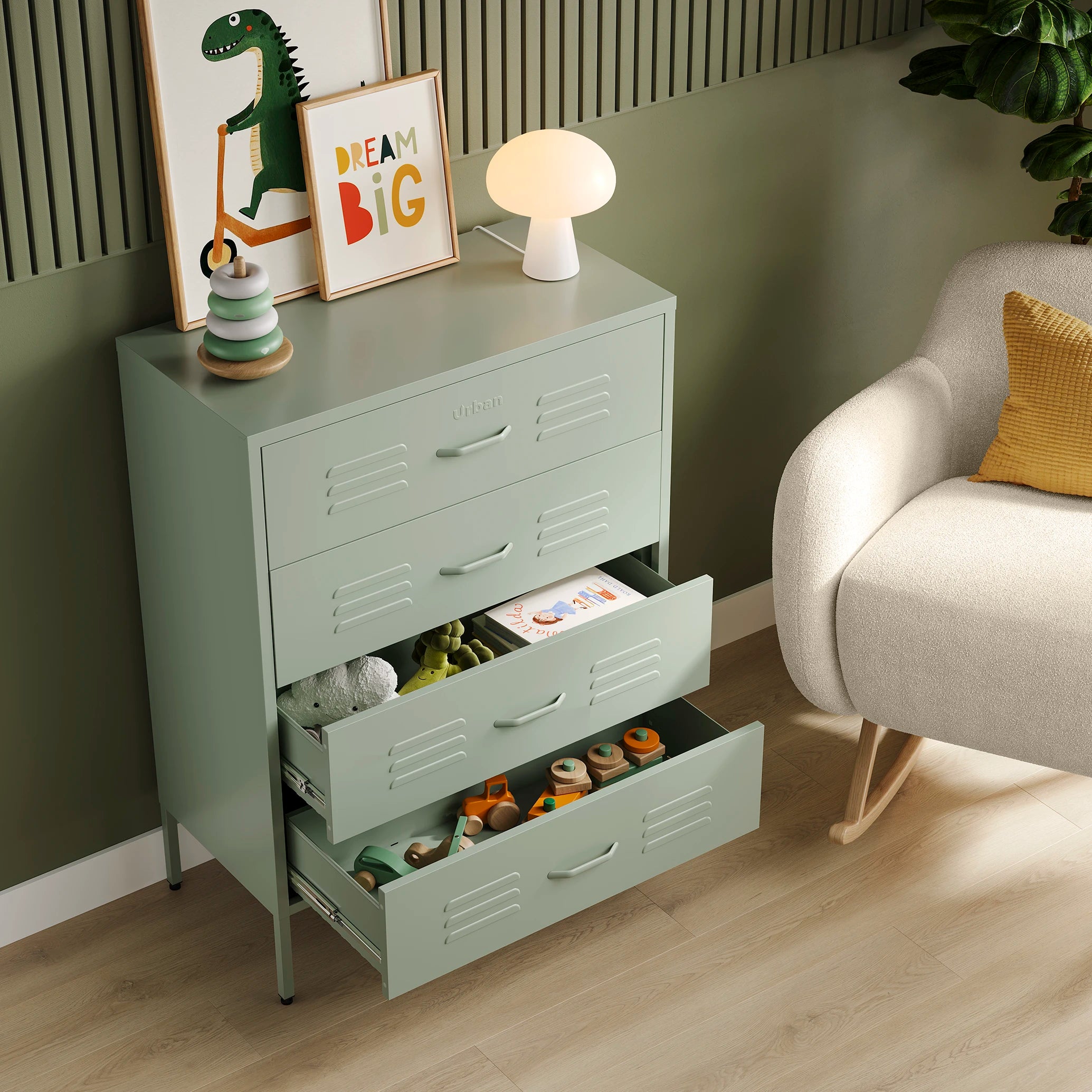 The Sage Green Harrow metal drawer locker combines a fresh, pastel tone with practical storage. This four-drawer locker is perfect for keeping clothes, linens, or everyday essentials neatly tucked away, while the smooth-gliding metal drawers offer effortless access. Locker drawer vents promote airflow, keeping stored items fresh, while adjustable feet and wall-mounting holes provide stability and flexibility. Whether styled as a modern bedroom drawer locker or a sleek office storage unit, this sage green locker adds a touch of charm to any space.