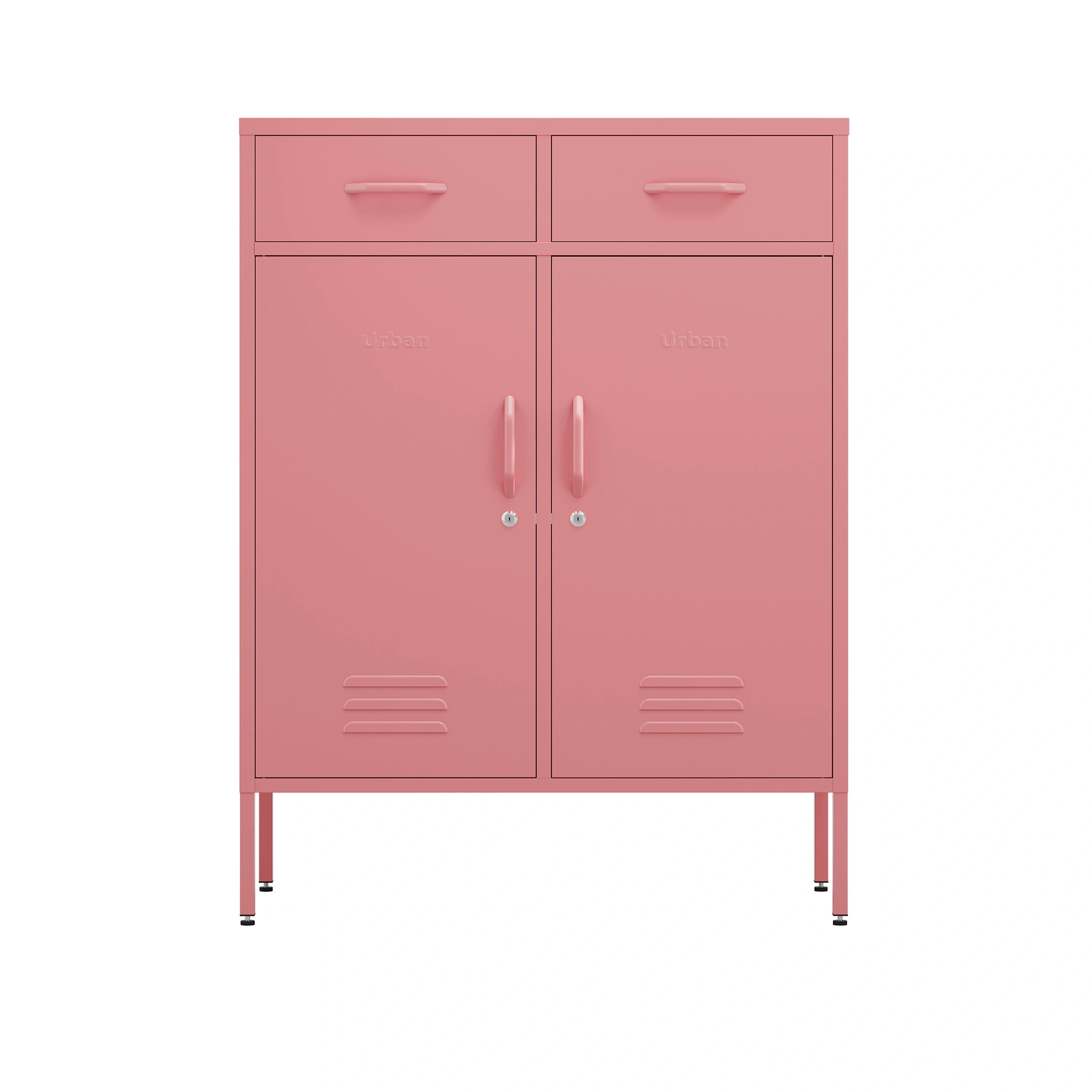 - Metal double door locker sideboard powder coated in Flamingo
