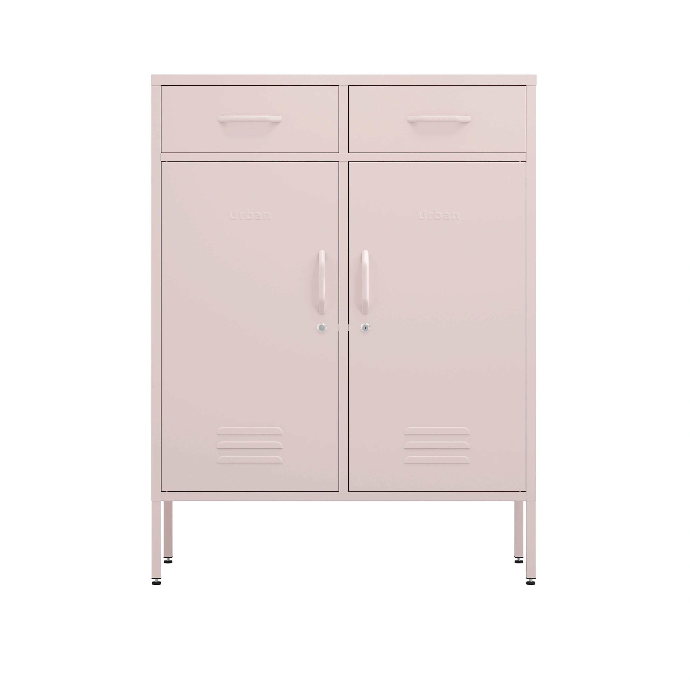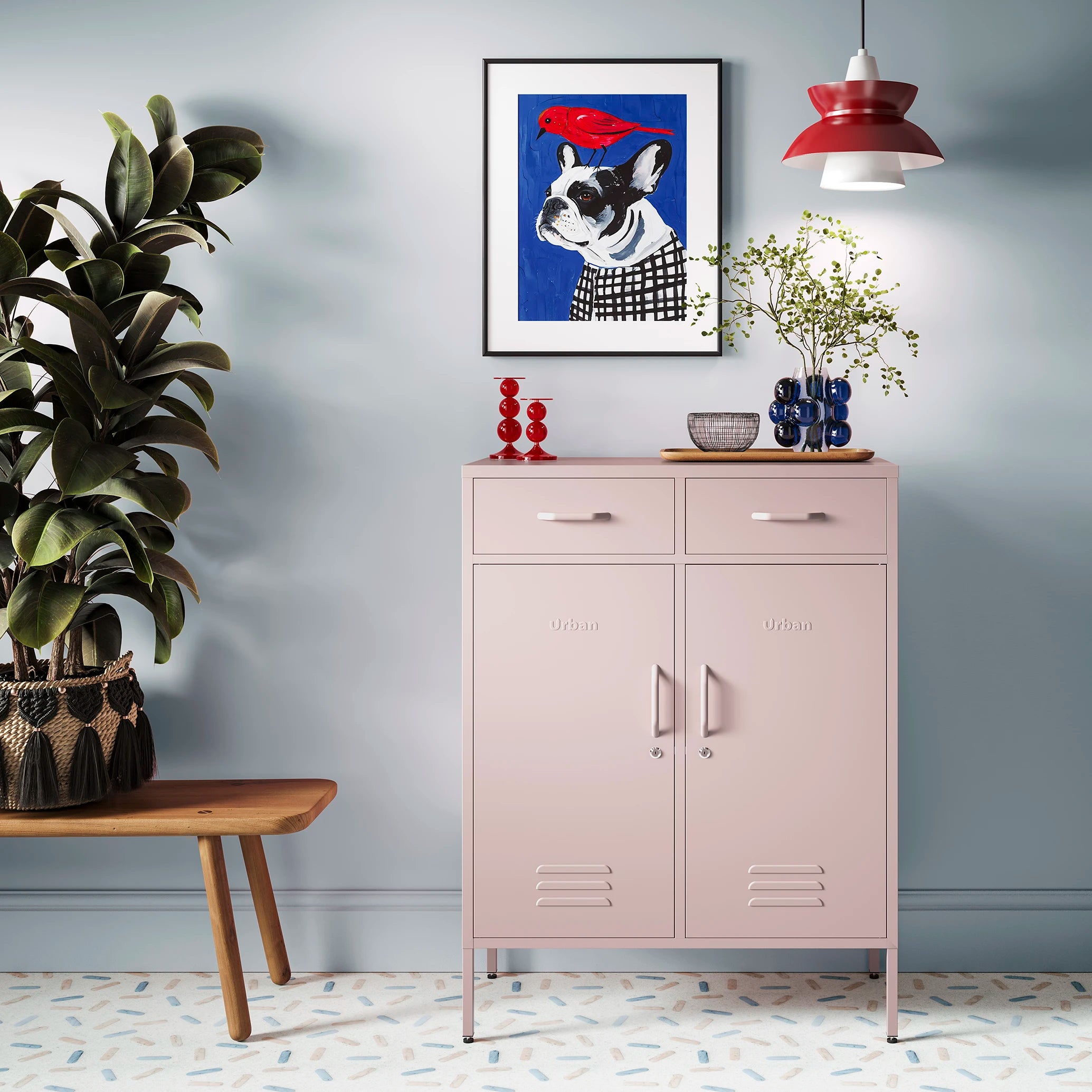 The Kensington 2 door metal locker with 2 drawers above, in light pink.