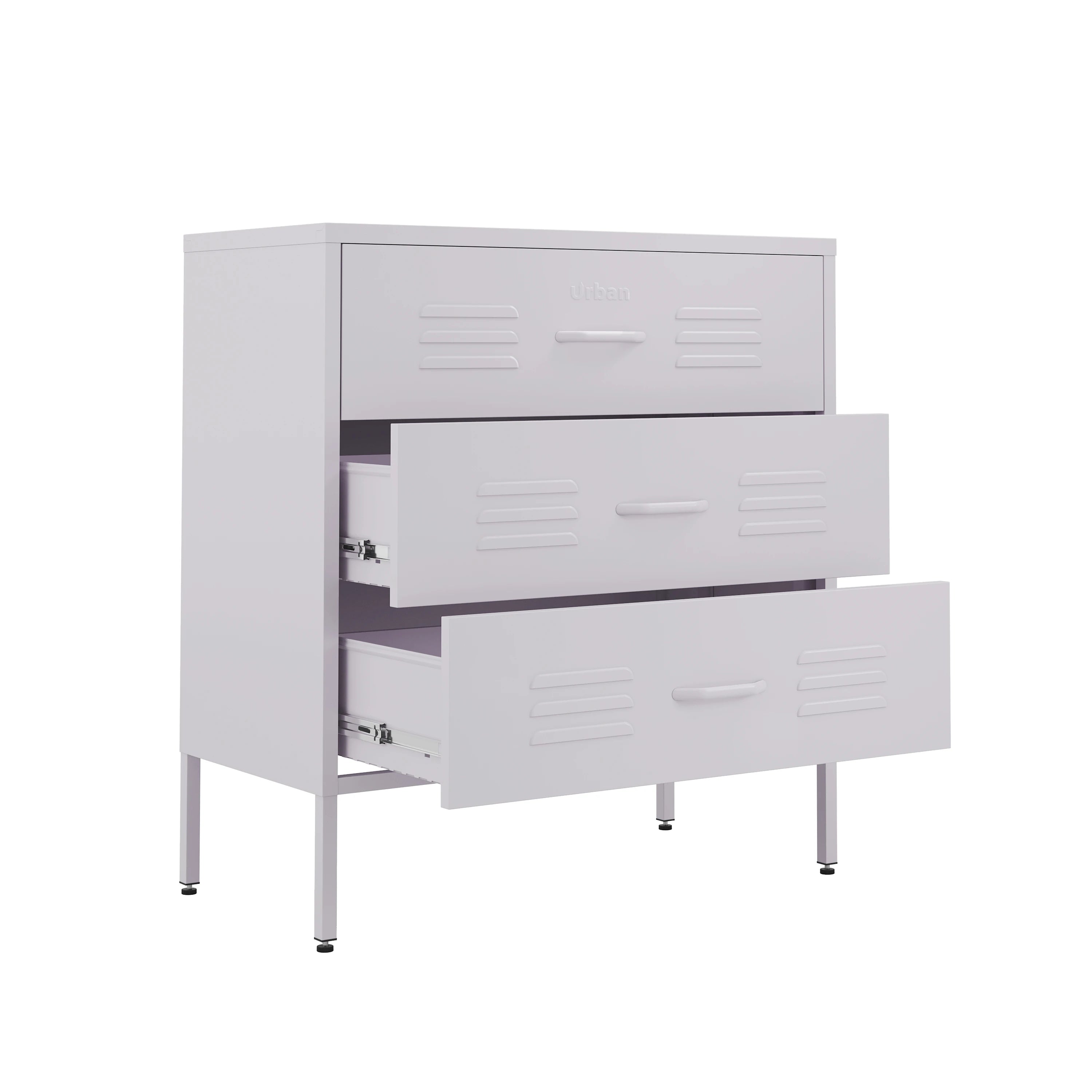 Create a fresh and organised look with the Lambeth locker. This metal three-drawer locker offers ample storage space and a soft pastel tone that brightens any room. The drawer vents ensure your clothes stay fresh. Additional features include wall mounting holes and adjustable feet for stability and convenience. Whether used as a bedroom locker or office locker, the Lambeth locker drawer adds a peaceful yet practical vibe to
