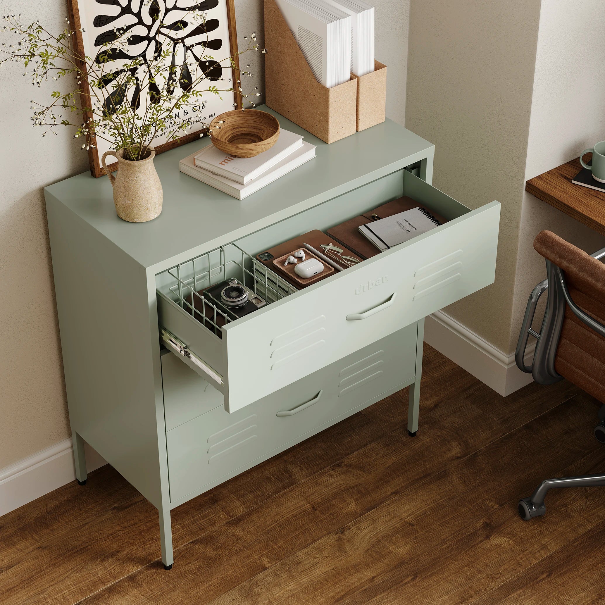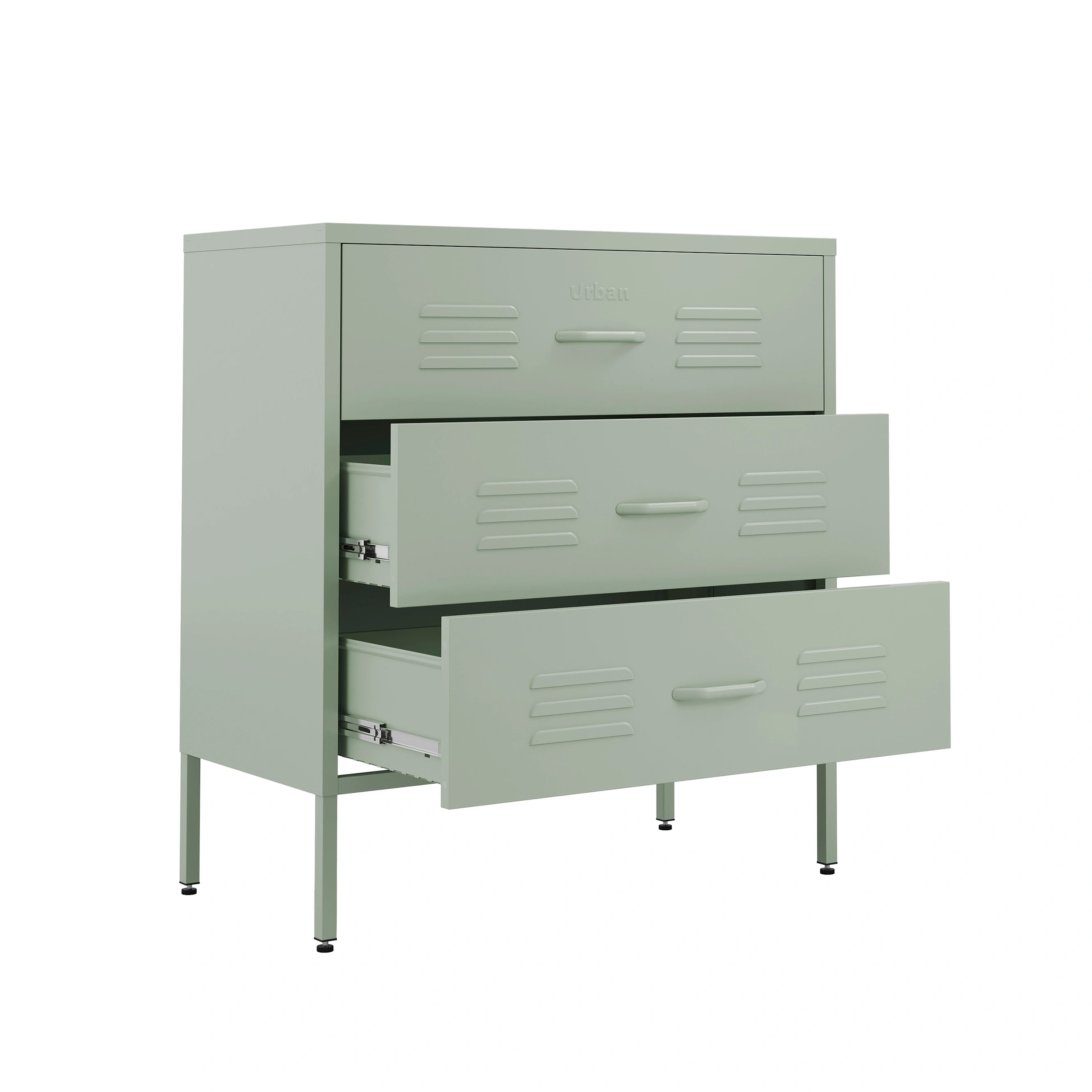 The Sage Green Lambeth locker is the perfect mix of practical storage and stylish design. This Sage Green locker has three smooth-gliding, metal, vented drawers which provide plenty of room for all your essentials, whether you're organising clothes, accessories, or paperwork. The soft Sage Green colour adds a calming touch to any space, while features such as wall mounting holes and adjustable feet ensure flexibility and convenience. Whether used as a bedroom locker or office locker, the Sage Green Lambeth locker is a dependable storage option that looks great too.