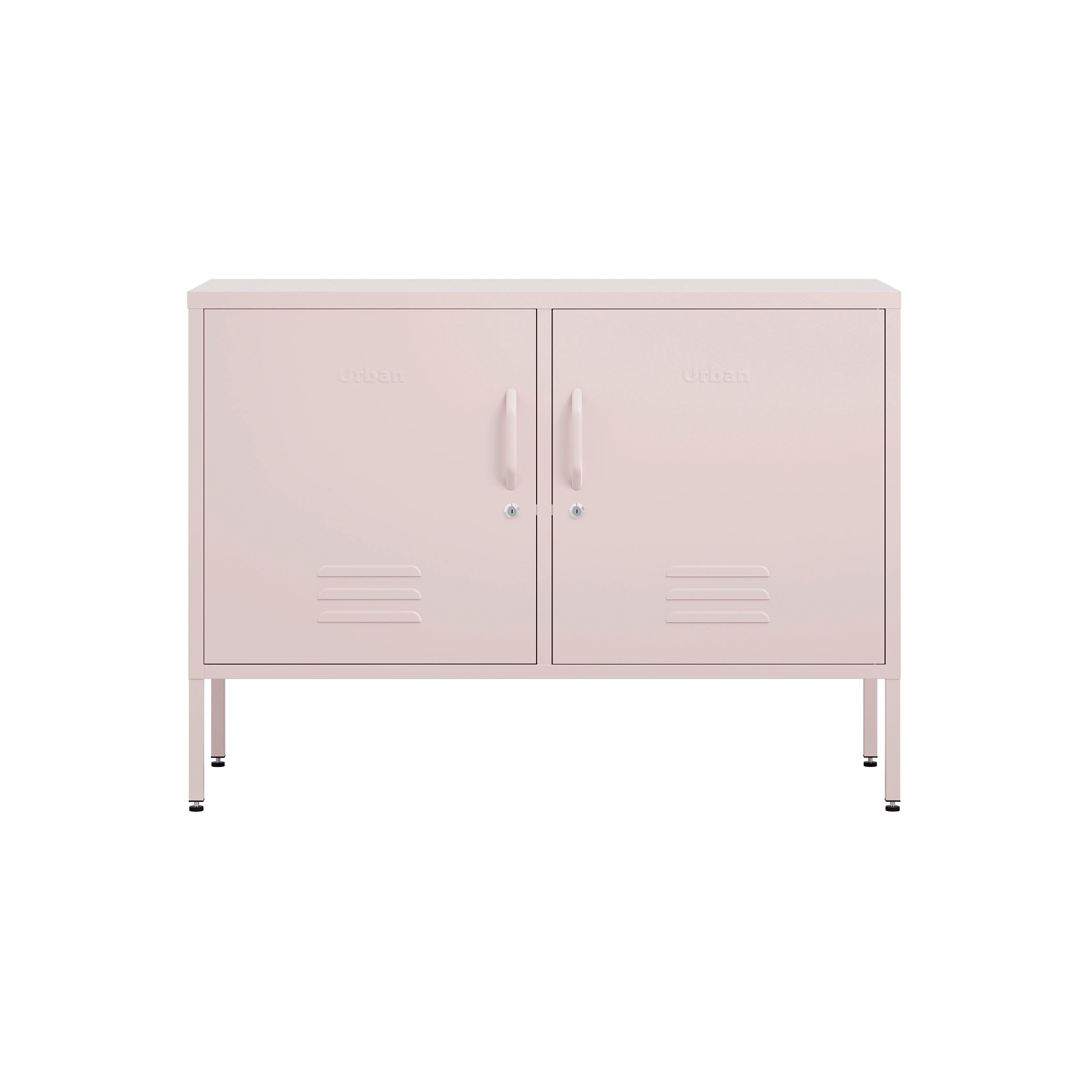 The Oxford, a wide, short 2 door metal locker in light pink.