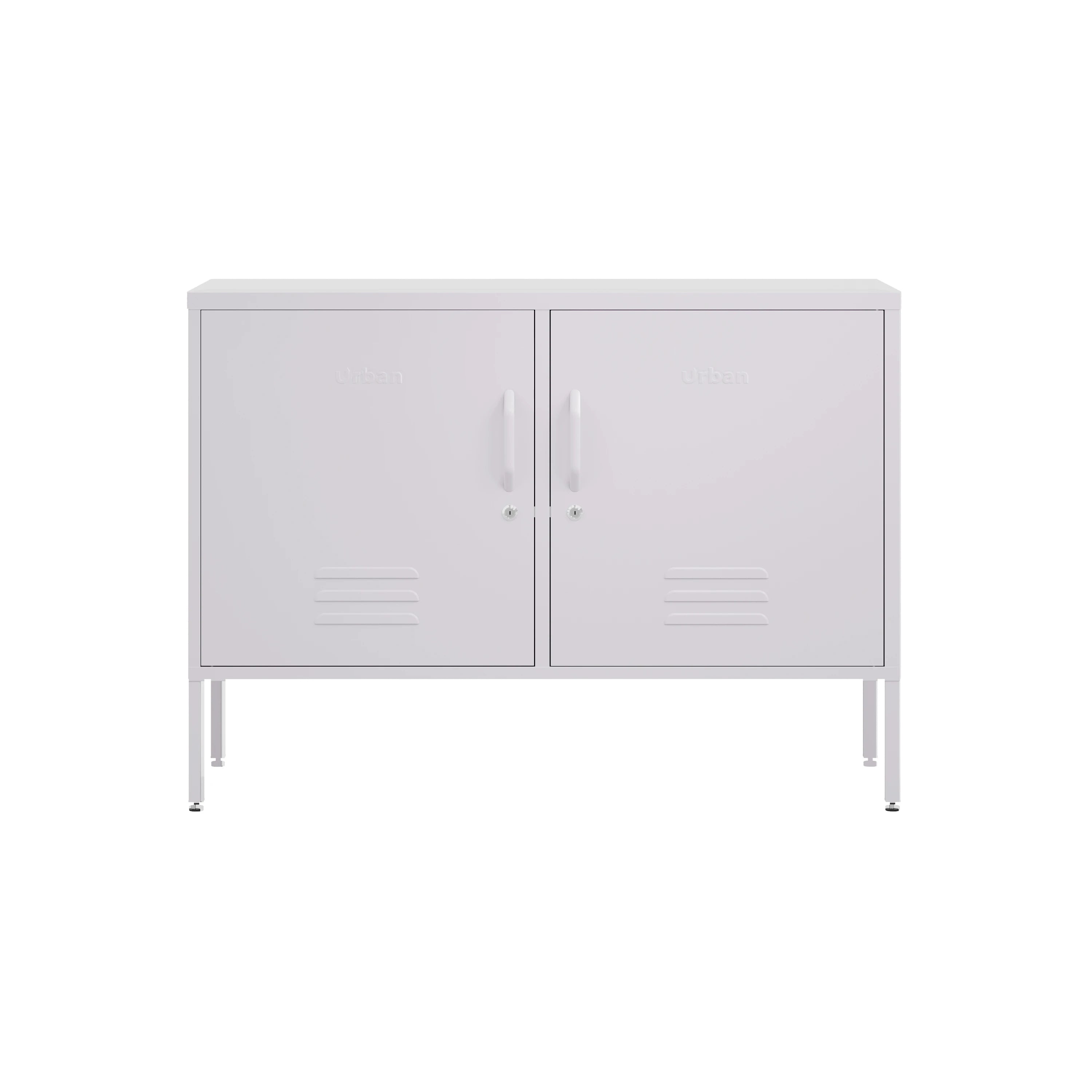 Small space? No problem! The Oxford is a wide, short two-door locker that’s compact in height but big on style. This pretty locker is the perfect mix of cute and functional, providing lots of storage without taking over your space. Whether you're looking for a TV stand, bathroom cabinet, or office storage, the Oxford has you covered. With cable holes in the back and adjustable shelves, its sleek design fits right in anywhere while keeping your essentials neatly out of sight. Plus, it’s packed with extra features such as a magnetic surface, handy hooks, wall mounting holes and adjustable feet.