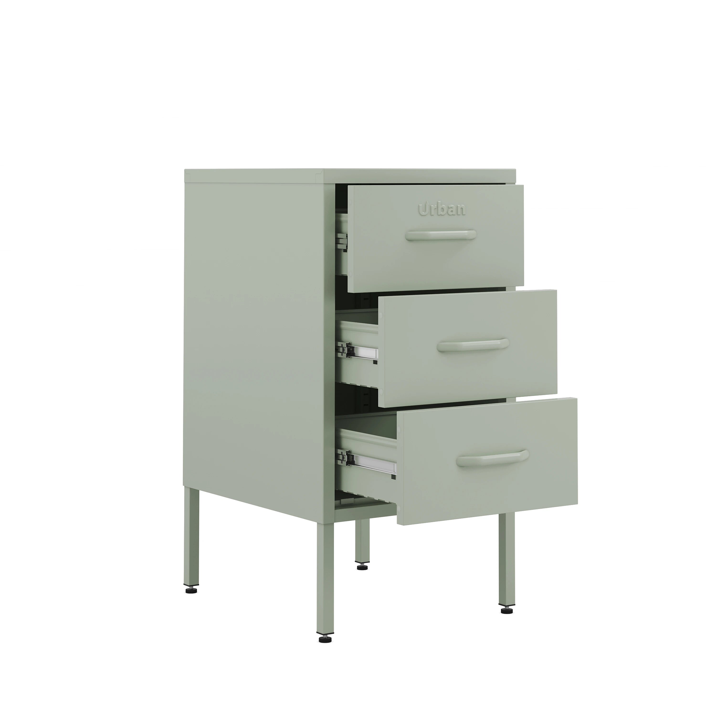 - Metal drawer unit powder coated in sage